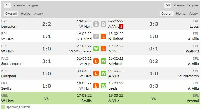 - เวสต์แฮม ลงเล่นกับ แอสตัน วิลล่า และชนะมาแล้ว 3 นัดติดต่อกัน (ทุกรายการ)