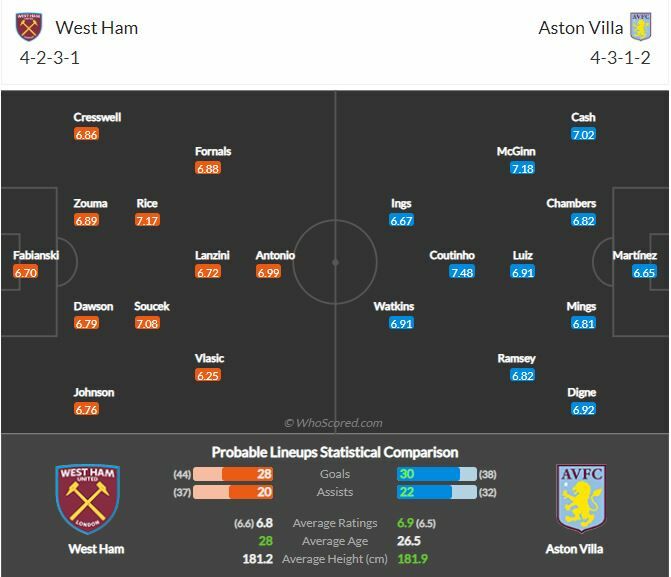 เวสต์แฮม และ แอสตัน วิลล่า ฟอร์มโดยรวมค่อนข้างใกล้เคียงกัน คุณภาพทีมก็ไม่ต่างกันมาก และเชื่อว่าเกมนี้น่าจะออกมาแบบสูสีก่อนที่จะแบ่งแต้มกันไปในที่สุด