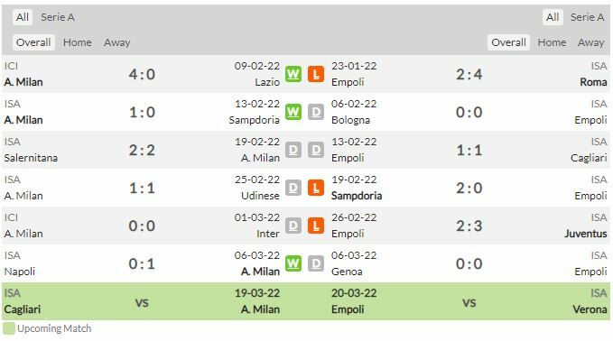 - ทีม เอ็มโปลี ของ ออเรลิโอ อันเดรียซโซลี่ เกมลีกล่าสุดบุกเสมอกับ เจนัว แบบไร้สกอร์ 0-0 ก่อนแข่งเกมนี้ เอ็มโปลี รั้งอันดับ 13 ของตาราง แข่งไป 28 นัด มีอยู่ 32 แต้ม