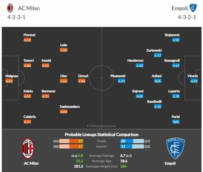 - การจัดทีมจะมาในระบบ 4-2-3-1 เตรียมสลับ อันเต้ เรบิช กับ บราฮิม ดิอาซ กลับมาออกสตาร์ทร่วมกับ ฟร้องค์ เคสซี่, โอลิวิเย่ร์ ชิรูด์, ซานโดร โตนาลี่, ฟิคาโย่ โทโมรี่ และ ราฟาแอล เลเอา โดยมี ซลาตัน อิบราฮิโมวิช, อิสมาเอล เบนนาเซอร์, ราเด้ ครูนิช, อเล็กซิส ซาเลอมาแกร์ส, อเลสซานโดร ฟลอเรนซี่, มัตเตโอ กับเบีย, จูเนียร์ เมสเซียส และ ดาเนียล มัลดินี่ เป็นกำลังสำรอง