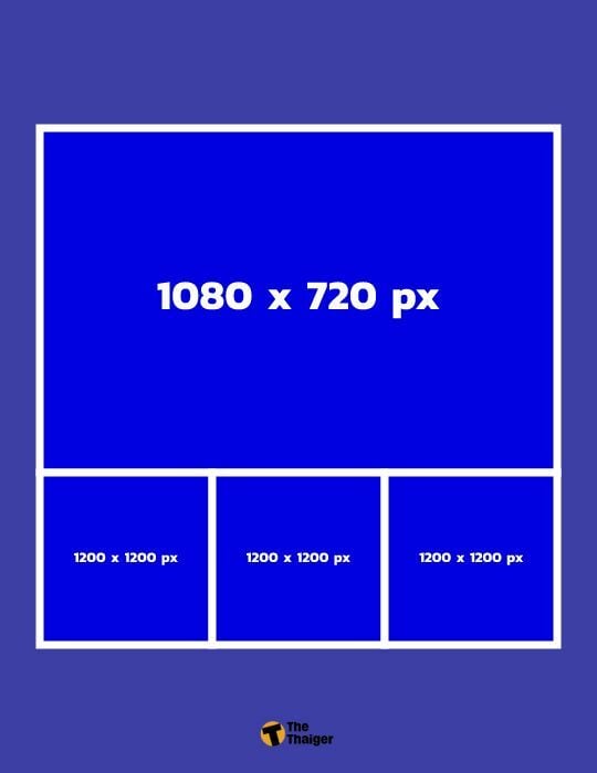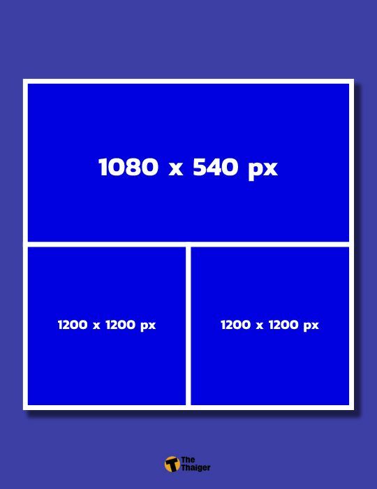 ขนาดรูป Facebook อัลบั้ม แนวนอน 3 รูป สำหรับการ Post โดยอัตราส่วนภาพที่ให้ความชัด ทั้งบนคอมและมือถือคือ 2:1 และ 1:1 ขนาดภาพที่ควรใช้คือ 1080 x 540 px / 1200 x 1200 px / 1200 x 1200 px