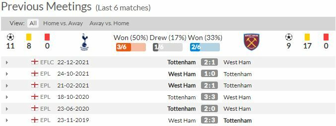 - เวสต์แฮม เสียประตูในการเยือนสเปอร์ส อย่างน้อยเกมละ 2 ลูกใน 3 นัดหลัง (เกมลีก)