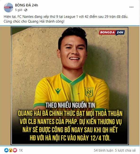 กวาง ไฮ ในวัย 25 ปี กำลังจะหมดสัญญากับ ฮานอย ซิตี้ ในวันที่ 12 เมษายนที่จะถึงนี้ ทำให้เจ้าตัวมีข่าวพัวพันกับบรรดาทีมในลีกยุโรป หนึ่งในนั้นมีชื่อของ เอฟซี บาเซิล ยอดทีมของลีกสวิตเซอร์แลนด์ ทว่าล่าสุดมีรายงานออกมาว่า กวาง ไฮ ต้องการย้ายไปเล่นในแดนน้ำหอมกับ น็องต์ มากกว่า