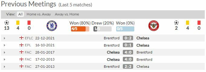 - เชลซี เก็บคลีนชีตได้ในการเจอกับ เบรนท์ฟอร์ด 4 นัดหลังสุด (ทุกรายการ)