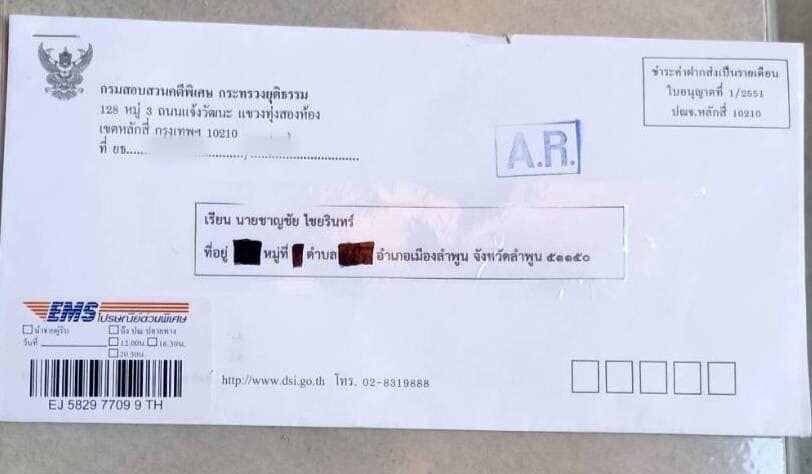 หลังจากที่ก่อนหน้านี้ ได้ปรากฎการเผยแพร่ ภาพถ่ายไปในสื่อโซเชียลมีเดียจำนวนมาก โดยเป็นภาพซองจดหมายของกรมสอบสวนคดีพิเศษ หรือ DSI ที่มีการระบุเลขหนังสือราชการ โดยจ่าหน้าซองถึงบุคคล รายหนึ่ง ประกบคู่กับภาพของหนังสือราชการ
