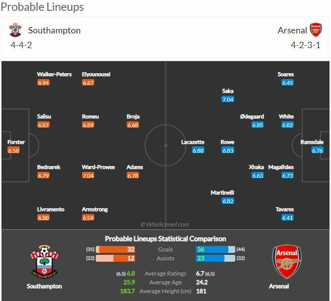 เซาธ์แฮมป์ตัน ในช่วงหลังฟอร์ไม่ดีเอาเสียเลย หลังไม่ชนะใครเลยตลอด 6 เกมล่าสุด ส่วนทางด้าน อาร์เซน่อล เองก็แย่ไม่แพ้กัน 2 เกมล่าสุดแพ้รวด แต่ด้วยคุณภาพนักเตะ และความมุ่นมั่นใจการจบท็อปโฟร์ คาดว่าทัพ ปืนใหญ่ จะเฉือนเอาชนะไปได้