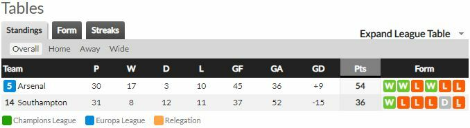เซาธ์แฮมป์ตัน 1-2 อาร์เซน่อล