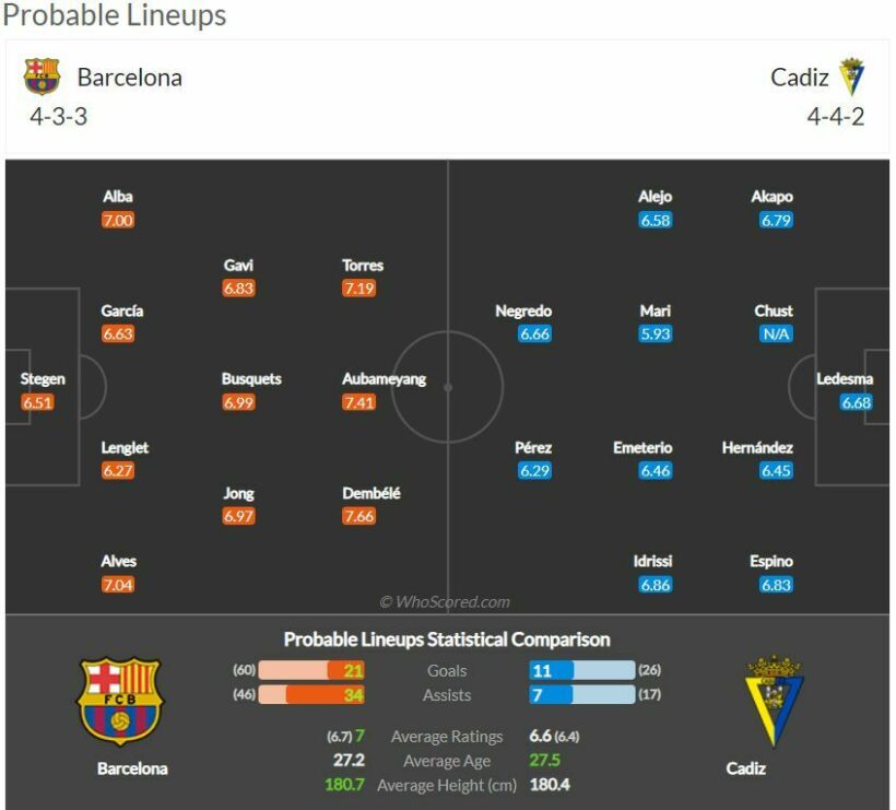 - ส่วนนักเตะคนอื่นๆพร้อมลงสนามทั้งหมด นำโดย มาร์ค-อันเดร แทร์ สเตเก้น, จอร์ดี้ อัลบา, เอริค การ์เซีย, เคลม็อง ล็องเล่ต์, ดานี่ อัลเวส, เซร์จิโอ้ บุสเก็ตส์, เฟรงกี้ เดอ ยอง, กาบี้, อุสมาน เดมเบเล่, แฟร์ราย ตอร์เรส และ ปิแอร์-เอเมอริค โอบาเมยอง