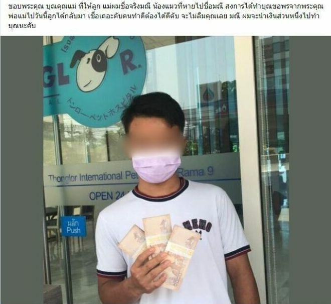 - แมวหาย เจ้าของตั้งรางวัลสำหรับคนที่หาเจอเป็นเงิน 3 แสนบาท