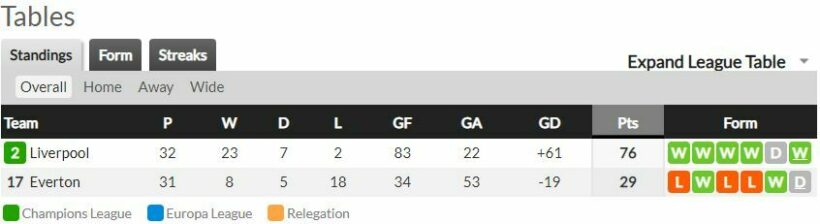 ลิเวอร์พูล กำลังอยู่ในฟอร์มที่สุดยอด 6 เกมล่าสุดไม่แพ้ใคร และเก็บชัยชนะได้ถึง 4 เกม สวนทางกับ เอฟเวอร์ตัน ที่ 5 เกมล่าสุดแพ้ไปถึง 3 เกม และเก็บชัยชนะได้เพียงแค่เกมเดียว เกมนี้คาดว่าจะเป็นฝ่ายหงส์แดงที่เปิดบ้านไล่ถล่มแบบไม่ยั้ง
