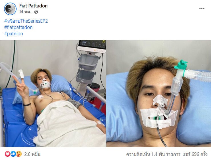 เล่นเอาแฟน ๆ ใจหายวาบ หลังนักแสดงหนุ่ม ‘เฟียต พัทธดนย์ จันทร์เงิน‘ ที่ ล่าสุด (25 เม.ย.) เจ้าตัวเพิ่งออกมาโพสต์ภาพสุดช็อกผ่านทางบัญชีเฟซบุ๊กส่วนตัว โดยเป็นภาพของหนุ่ม เฟียต ขณะกำลังนอนแอดมิทต่อท่อเครื่องช่วยหายใจบนเตียงผู้ ป่วย ในโรงพยาบาล งานทำเอาเหล่าบรรดาแฟนคลับต่างแห่กันเข้ามาคอมเมนต์ที่ใต้โพสต์ดังกล่าว เพื่อให้กำลังใจนักแสดงหนุ่มกันอย่างมากมาย เช่น