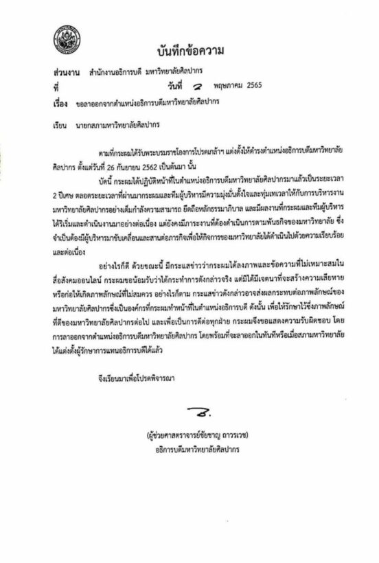 - ด่วน! ชาญชัย ถาวรเวช ลาออกจากอธิการบดีมหาวิทยาลัยศิลปากร ปมข่าวถ่ายภาพแอร์โฮสเตส