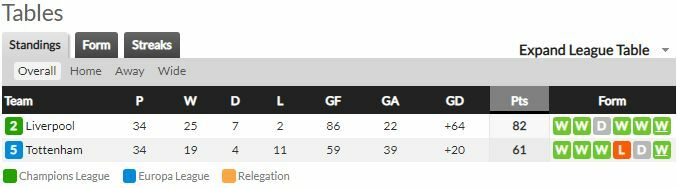 ลิเวอร์พูล เพิ่งทะลุเข้าสู่รอบชิงชนะเลิศ ยูฟ่า แชมเปี้ยนส์ลีก ทำให้สภาพความฟิตอาจเป็นรอง ส่วนทางด้าน สเปอร์ส มีปัญหาด้านการจัดตัวนักเตะ หลังมีแข้งบาดเจ็บหลายราย คาดว่าเกมนี้จะออกมาค่อนข้างอึดอัด และม๊โอกาสสูงที่จะจบลงด้วยผลเสมอ