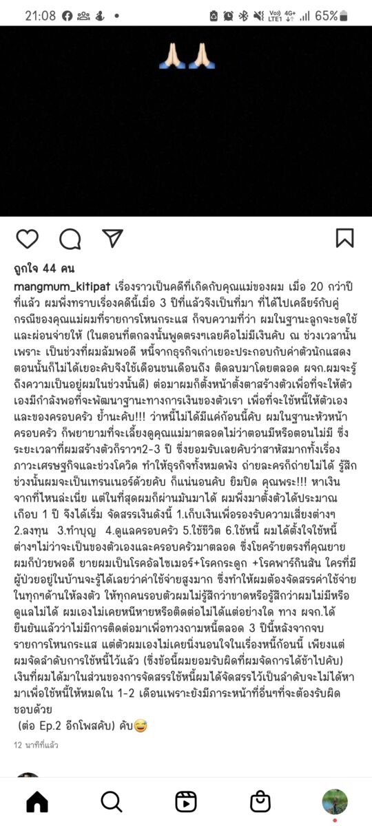 ดังนั้นวันนี้ผมได้แสดงความรับผิดชอบในฐานะลูกโดยการชำระหนี้ทั้งหมดให้กับคุณแม่ เป็นจำนวนเงิน 600,000 บาท และได้แนบหลักฐานไว้แล้วคับ