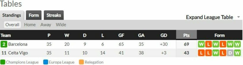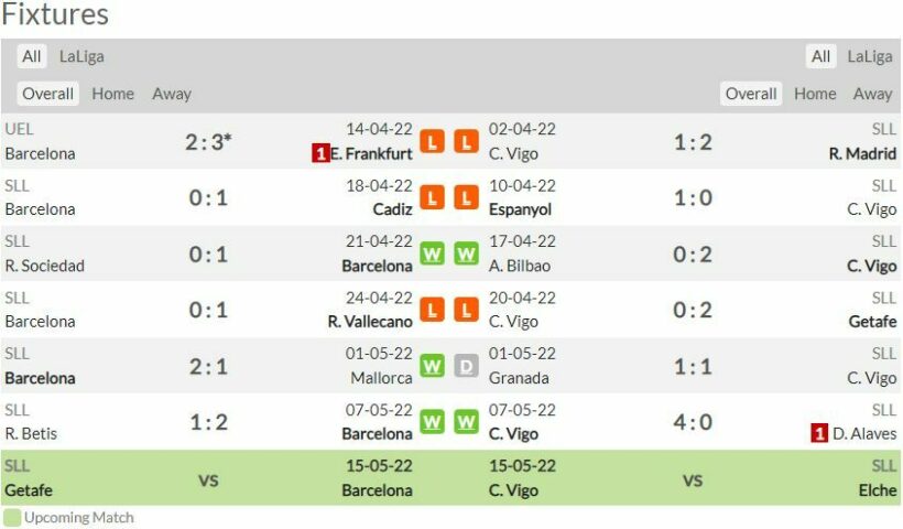 บาร์เซโลน่า กลัวมาเล่นได้ดีอีกครั้ง ชนะมารวดใน 2 เกมล่าสุด หลังจากที่ก่อนหน้านี้แพ้เกมในบ้านมา 3 เกมติด ส่วนทางด้าน เซลต้า บีโก้ ก็ไม่มีอะไรให้ลุ้นแล้ว ผลงาน 2 เกมล่าสุดไม่แพ้ใคร ชนะ 1 เสมอ 1 คาดว่าเกมนี้รูปเกมจะออกมายึดอัดพอสมควร แต่เชื่อว่าทัพเจ้าบุญทุ่ม จะเฉือนเอาชนะไปได้