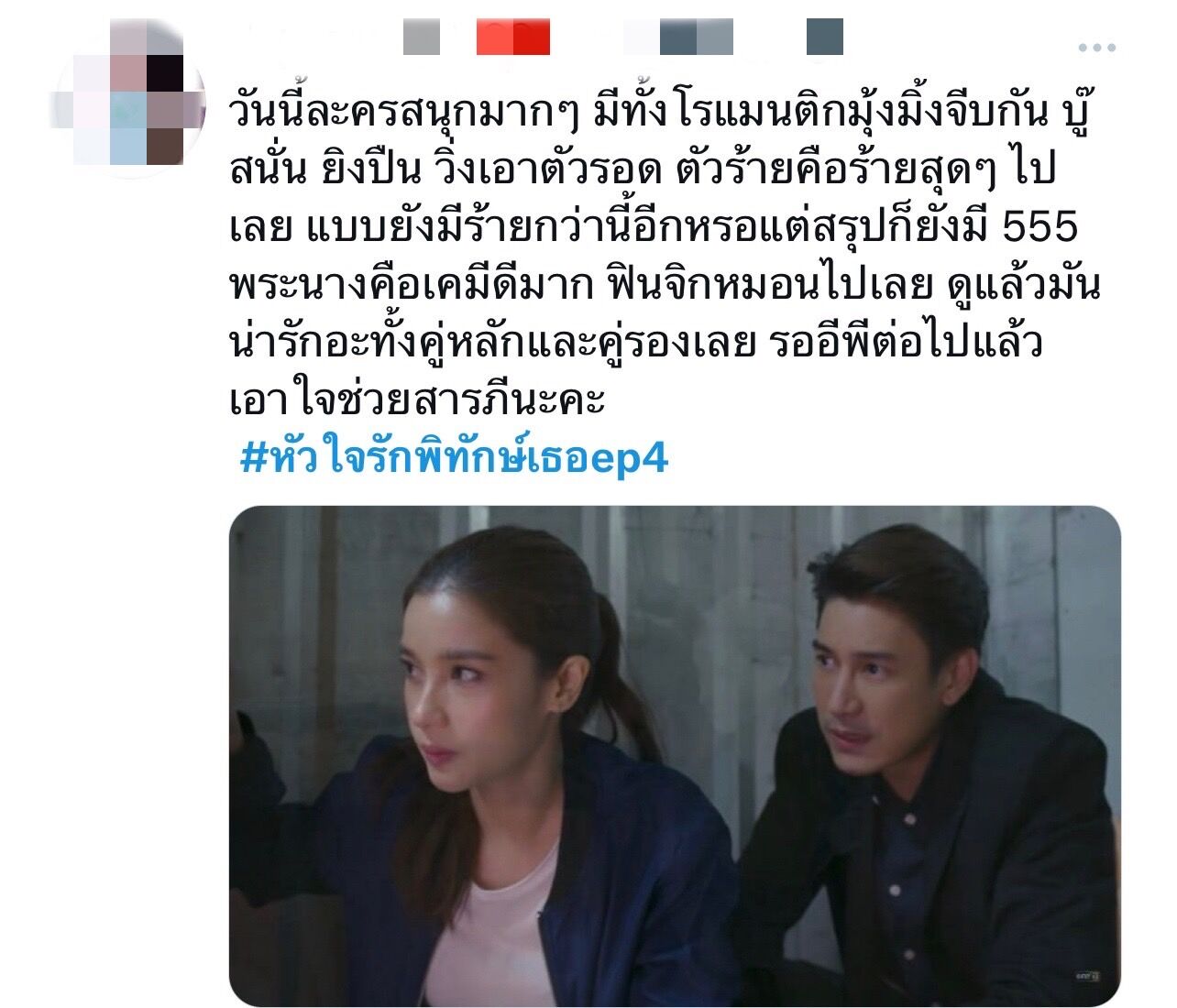 “ฟีดแบคดีตั้งแต่ออนแอร์ไปตอนแรกเลยครับ แฟนละครชอบกับมาดกวนๆ เหมือนจะเย็นชา แต่ก็แอบรุกใส่นางเอกเบาๆ หลายคนชื่นชมเคมีของผมกับวิว ที่ดูลื่นไหล ลงตัว มีความแก้เผ็ดกันได้ถึงใจ ยิ่งจังหวะขิงกันระหว่างผมกับเพชร โบราณินทร์ (ผู้กองเวไนย) คนดูจะโดนใจเป็นพิเศษครับ