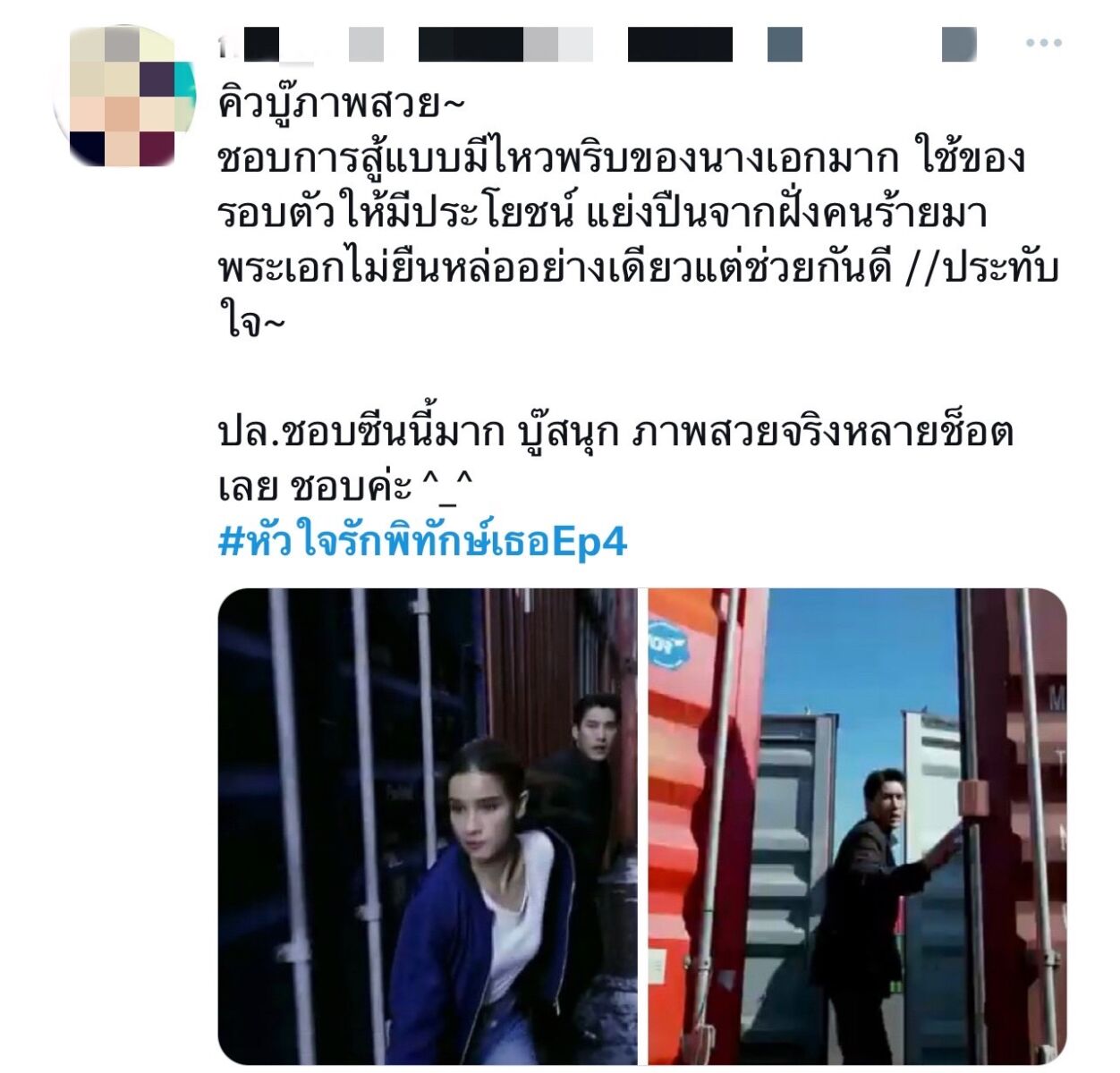 ส่วนบทแอ็คชั่นมีบ้าง เป็นแบบสู้มา สู้กลับ แต่ไม่เยอะเท่าสารภี (วิว วรรณรท) อีกหนึ่งความอดทนของผม คือเวลาเข้าฉากกับ เฟิร์น พัสกร ,ตั้ม วราวุธ ,พี่ต๊อก ศุภกร ,พี่เจี๊ยบ เชิญยิ้ม ทีมนี้ทำผมขำไหล่สั่นตลอด ส่วนเลิฟซีนก็มีพอน่ารัก จูบตามความรู้สึกล้วนๆ ละครเรื่องนี้เป็นแอ็คชั่นที่ดุเดือด แต่มุมสนุก น่ารักเยอะมาก มีหลากหลายรสชาติ รับรองลุ้นกันจนสนุกแน่นอนครับ”