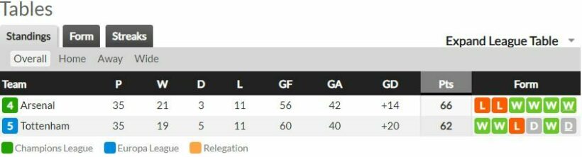 สเปอร์ส 3 เกมล่าสุดไม่แพ้ใคร แต่เก็บชัยชนะไปได้เพียงแค่เกมเดียว ส่วน6 เกมล่าสุดปราชัยไปเพียงแค่เกมเดียว ส่วนทางด้าน อาร์เซน่อล ชนะรวดมาตลอด 4 เกมล่าสุด เชื่อว่าเกมนี้จะออกมาสนุกสูสี แต่มีโอกาสสูงที่ทั้งสองทีมจะเสมอกันแบบมีสกอร์