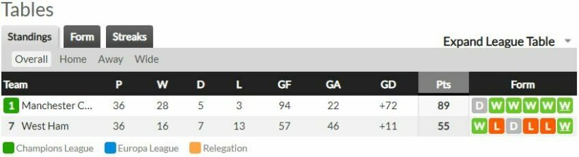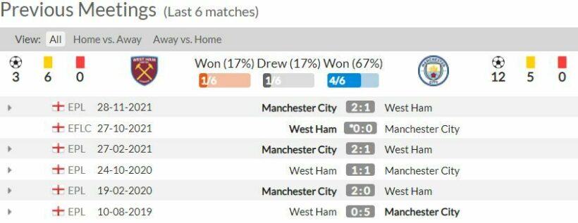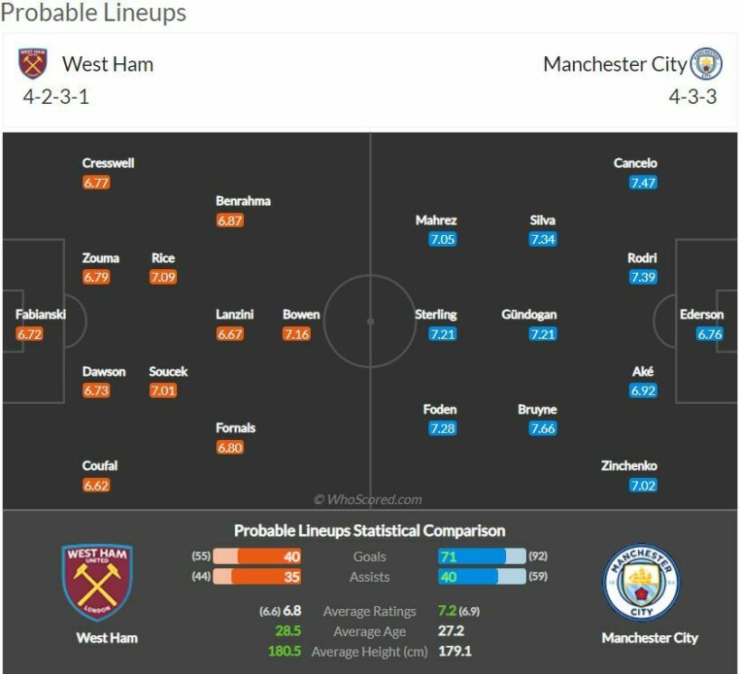 เวสต์แฮม ในช่วงหลังฟอร์มไค่อยดีสักเท่าไรนัก 4 เกมก่อนหน้านี้แพ้รวด ก่อนจะกลับมาชนะได้ในเกมล่าสุด ส่วนทางด้าน แมนฯ ซิตี้ 6 เกมล่าสุด ชนะไปถึง 5 เกม แต่เกมนี้ทั้งสองทีมต่างต้องการ 3 คะแนน ซึ่งถ้าเจ้าบ้านเลือกที่จะเปิดเกมบุกใส่ทัพเรือใบสีฟ้า อาจจะกลายเป็นเข้าทางได้ อย่างไรก็ตามคาดว่าเกมนี้ แมนฯ ซิตี้ จะเอาชนะไปได้แบบฉิวเฉียด