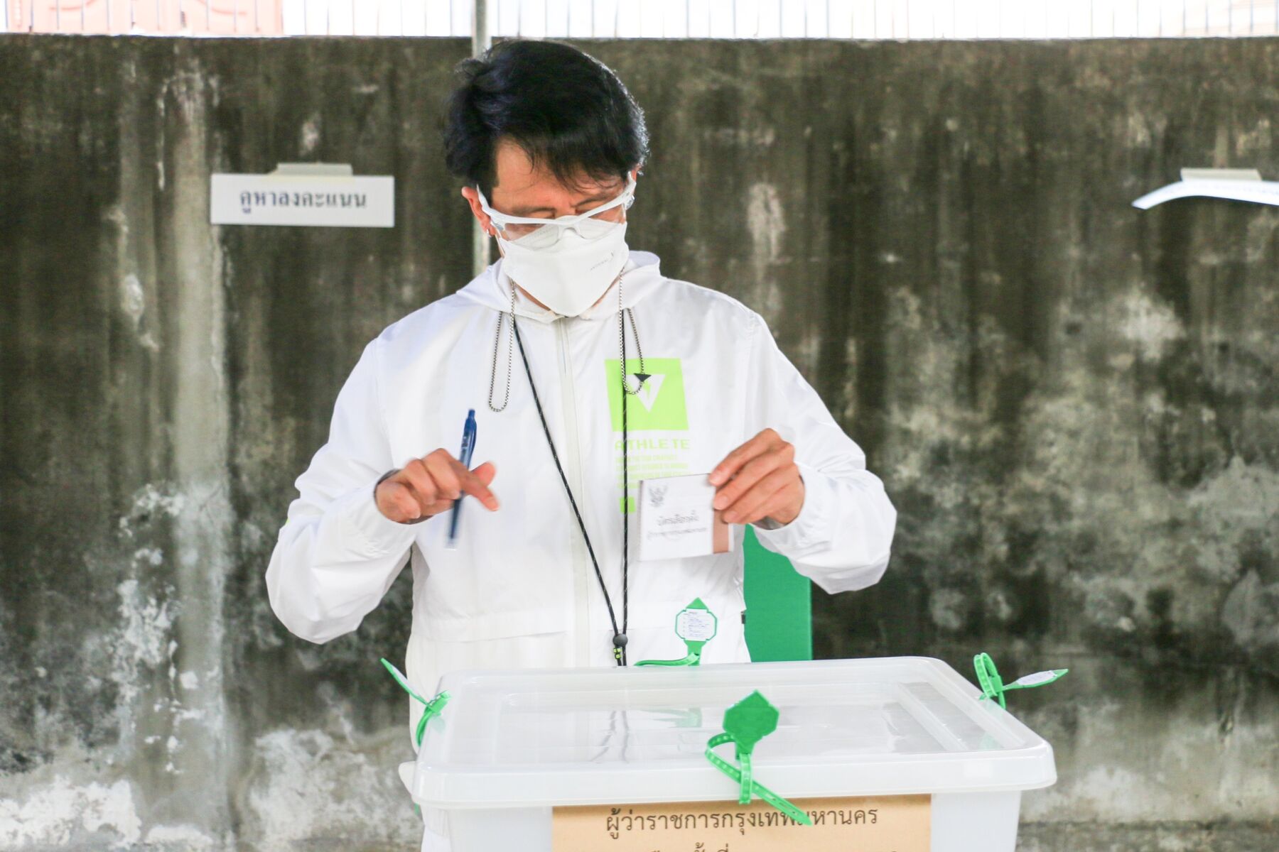ซึ่งอยู่ภายใต้มาตรการควบคุมการแพร่ระบาดของโรคโควิด-19 อย่างเคร่งครัด เมื่อเดินทางถึงหน่วยเลือกตั้ง เบิร์ด เข้าไปตรวจสอบรายชื่อและลำดับที่ของตนเองจากบัญชีรายชื่อที่ประกาศไว้หน้าหน่วยเลือกตั้ง จากนั้นเดินมาลงลายมือชื่อพร้อมรับบัตรเลือกตั้งทั้ง 2 ใบ เดินเข้าคูหาลงคะแนนเสียง และหย่อนบัตรเลือกตั้งลงในหีบบัตร