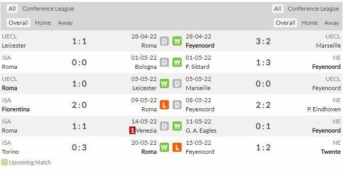 - เฟเยนูร์ด ไม่ชนะใครถึง 3 จาก 4 เกมหลังสุดรวมทุกรายการหลังเปิดบ้านปราชัยต่อ เอฟซี ทเวนเต้ 1-2 ในเกมลีกนัดปิดฤดูกาล 2021-22 ส่วนผลงานในรายการนี้ เฟเยนูร์ด ผ่านเข้ารอบชิงชนะเลิศมาได้ด้วยการเอาชนะ โอลิมปิก มาร์กเซย ในรอบรองชนะเลิศด้วยสกอร์รวม 3-2