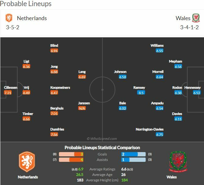 ฮอลแลนด์ ถึงแม้ว่าเกมล่าสุดจะเสมอมา แต่ฟอร์มภาพรวมยังยอดเยี่ยม สวนทางกับ เวลส์ ที่เพิ่งเก็บแต้มแรกจากการเสมอมาเมื่อเกมก่อน คาดว่าเกมนี้ทัพอัศวินสีส้มจะเปิดเกมรุกเข้าใส่อย่างหนัก และเชื่อว่าเจ้าบ้านจะเอาชนะไปได้ไม่ยาก