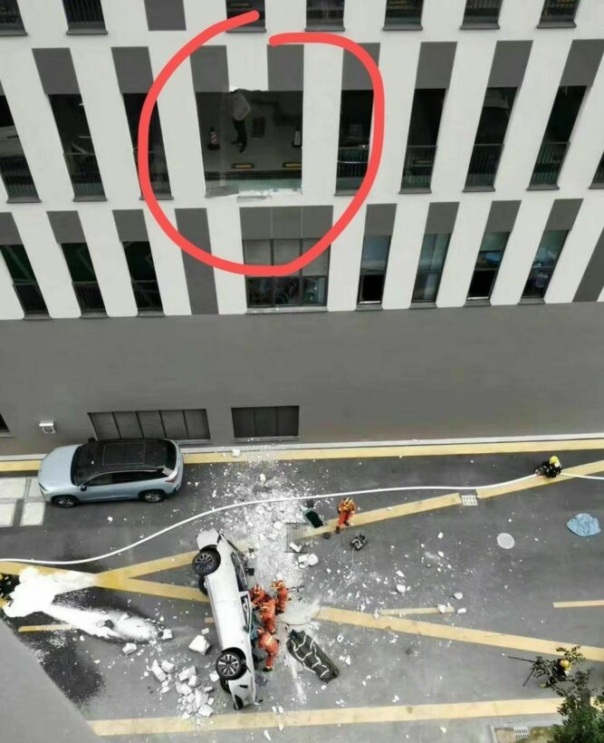 Terrible story of two test drivers at #China’s electrical vehicle manufacturer NIO being killed when a car somehow smashed out of a building and came crashing down from a great height. pic.twitter.com/4ZNI2t7LqZ