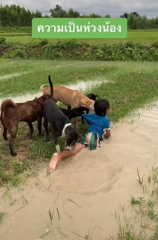 จากคลิปแสดงให้เห็นว่า เด็กคนหนึ่งได้ตั้งใจกระโดดลงไปในน้ำ เมื่อเห็นดังนั้น เหล่าสุนัขทั้งหมด 5 ตัว ก็ได้ช่วยกันลากตัวของเด็กคนนี้ขึ้นมา และต่อให้เด็กคนนี้กระโดดลงไปใหม่ เหล่าสุนัขก็ร่วมแรงร่วมใจดึงเด็กกลับขึ้นมาอีกครั้ง กลายเป็นคลิปสุดน่ารักที่ทำเอาหัวใจนุ่มฟูไปตามๆกัน