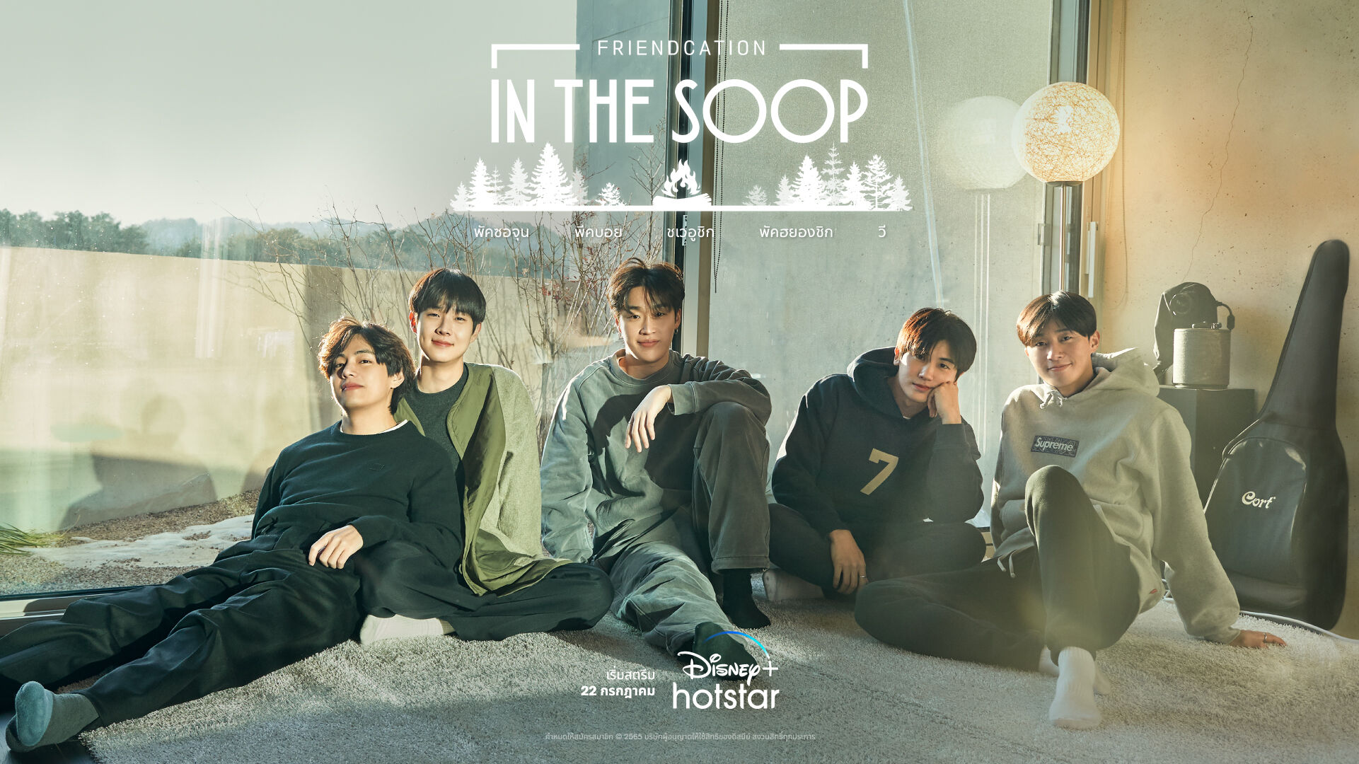 IN THE SOOP : Friendcation รายการสปินออฟเรียลลิตี้ท่องเที่ยวครั้งนี้ นำทีมโดยเหล่าเพื่อนสนิท พัคซอจุน, พีคบอย, ชเวอูชิก, พัคฮยองชิก และ วี จาก BTS ที่จะพาแฟน ๆ ไปพบกับทุกคนแบบใกล้ชิด ในระหว่างที่พวกเขาหลีกหนีจากชีวิตที่แสนวุ่นวาย ออกทริปในป่าสุดรีแล็กซ์ด้วยกัน โดยตลอดทั้ง 4 ตอนของรายการเรียลลิตี้ท่องเที่ยวใหม่ล่าสุดตัวนี้ แฟน ๆ จะได้เห็นซูเปอร์สตาร์ที่พวกเขารักได้ใช้เวลาด้วยกัน ท่ามกลางธรรมชาติที่งดงาม พร้อมร่วมรำลึกถึงช่วงเวลาดี ๆ ซ่อนตัวจากความวุ่นวายและความกดดัน จากงานในวงการบันเทิง