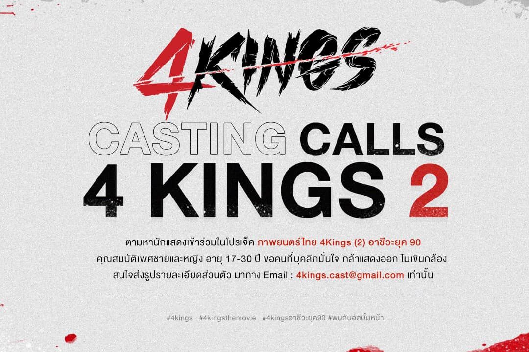 เพจเฟซบุ๊ก 4Kings ภาพยนตร์ไทยชื่อดังได้ออกมาโพสต์ภาพประกาศรับสมัครนักแสดง 4 Kings ภาค 2 พร้อมข้อความกำกับว่า “4kings[2] ขอเชิญคุณมาเป็นส่วนหนึ่ง ของอัลบั้ม 2 ไปด้วยกัน