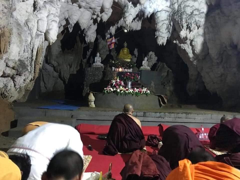 “บรรยากาศวันนี้ที่ถ้ำเมืองแก๊ด 31/7/2022 ทุกคนมารอรับครูบาบุญชุ่มออกจากถ้ำ ล้นหลามเต็มไปหมด และเห็นภาพครูบาท่านแต่ด้านหลัง กำลังนั่งสวดมนต์อยู่ ขอบคุณภาพจาก Owin Woh”