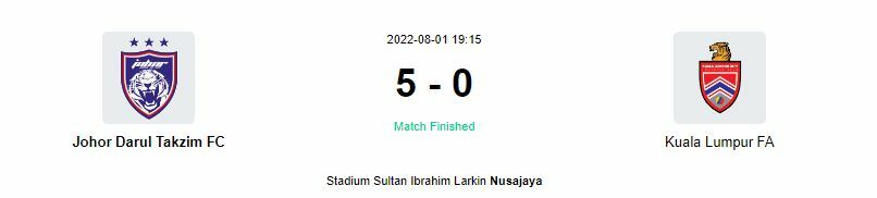 ผลบอลสด มาเลเซีย ซูเปอร์ลีก ล่าสุด (2 สิงหาคม 2022)