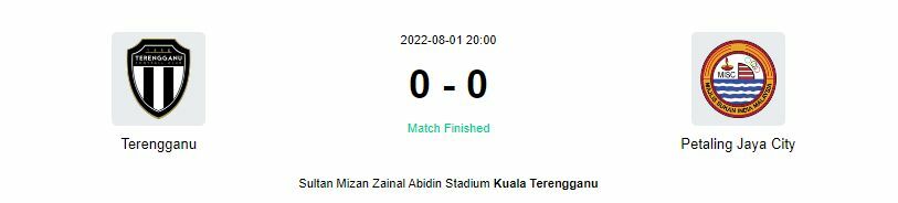 คู่สุดท้าย ตรังกานู เปิดบ้านรับการมาเยือนของ เปตาลิง จายา ซิตี้ เอฟซี ในเวลา 20:00 น. โดยทั้งสองทีมไม่สามารถทำประตูกันได้ ทำให้ทั้งสองฝ่ายแบ่งทีมละ 1 คะแนน
