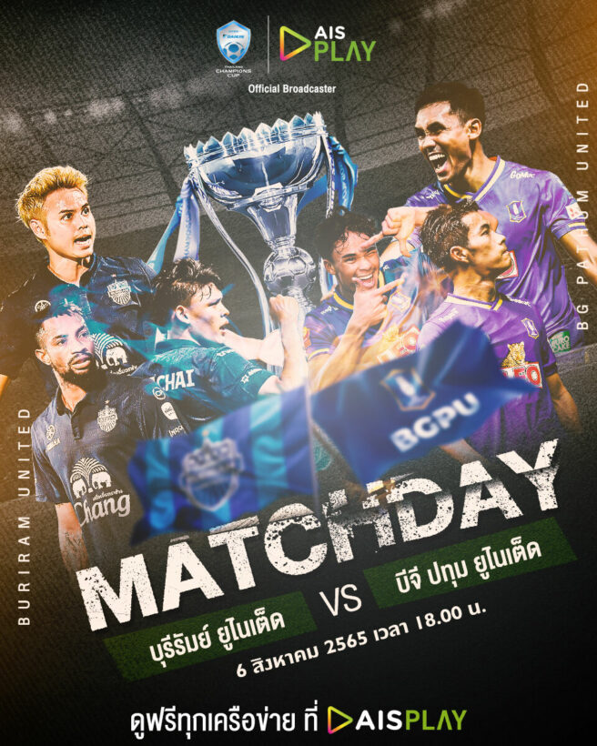 ฟุตบอล ไทยแลนด์ แชมเปี้ยนส์ คัพ บุรีรัมย์ ยูไนเต็ด พบ บีจี ปทุม ยูไนเต็ด ลิงค์ถูกลิขสิทธิ์ ดูบอลสด AIS PLAY