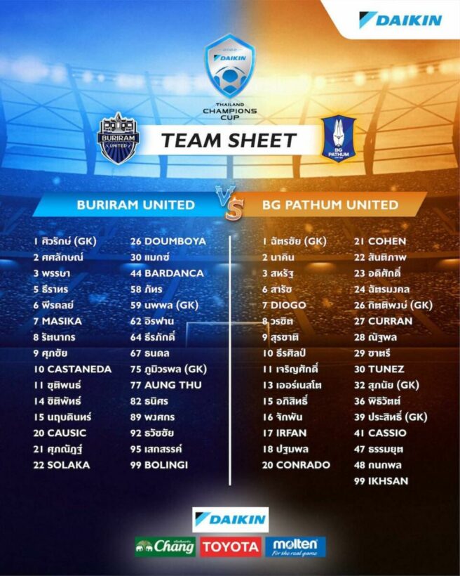 รายชื่อนักเตะทั้งสองทีมที่เตรียมลงเล่น
