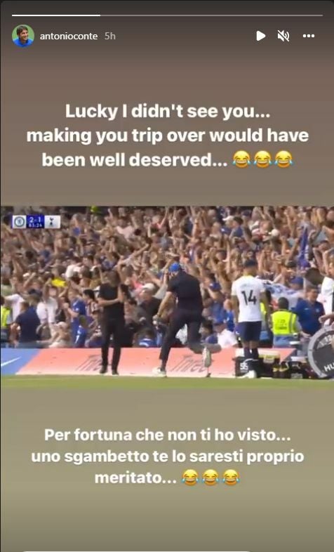 แต่กลายเป็นว่าล่าสุด คอนเต้ได้มีการโพสต์ไอจีสตอรี่ เป็นคลิปจังหวะที่ ทูเคิ่ลวิ่งสะใจที่ลูกทีมขึ้นนำ 2-1 พร้อมแคปชั่นสั้นๆว่า “โชคดีไปที่ข้ามองไม่เห็นเอ็ง… ไม่งั้นการวิ่งมาตรงนี้จะได้รับผลตอบแทนอย่างสาสม…” พร้อมด้วยอีโมจิหัวเราะจนน้ำตาไหล 3 ตัว คาดว่านายใหญ่ชาวอิตาลีต้องการจะส่งสารนี้ไปถึงทูเคิ่ล