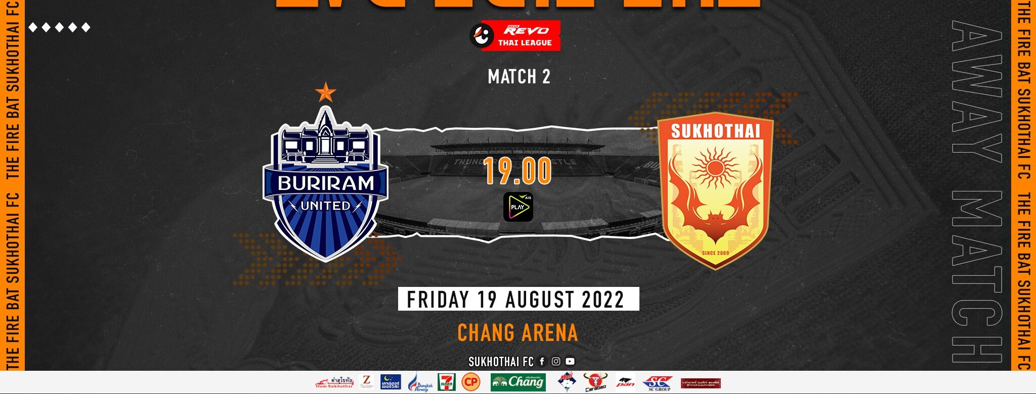 ศึกฟุตบอล รีโว่ ไทยลีก ฤดูกาล 2022/23 เปิดฉากขึ้นแล้ว เกมสัปดาห์ที่สองของซีซั่นนี้เป็นการเจอกันของ “ปราสาทสายฟ้า” บุรีรัมย์ ยูไนเต็ด เปิดบ้านต้อนรับการมาเยือนของ “ค้างคาวไฟ” สุโขทัย เอฟซี ที่สนาม ช้าง อารีนา วันศุกร์ที่ 19 สิงหาคม เวลา 1 ทุ่มตรง