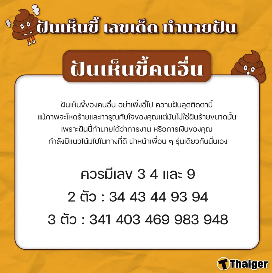 - เลขเด็ด ฝันเห็นขี้คนอื่น : 3 4 และ 9