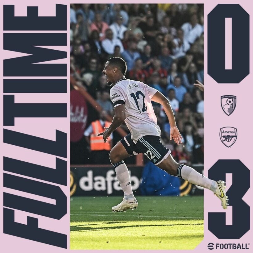 จบเกม บอร์นมัธ แพ้ อาร์เซน่อล 0-3 ส่งให้ทีมของอาร์เตต้าขึ้นนำเป็นจ่าฝูงชั่วคราว