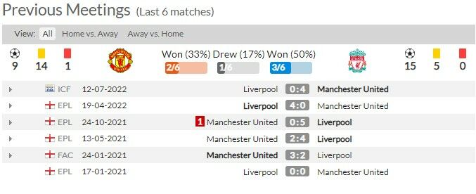 สถิติก่อนเกม แมนฯ ยูไนเต็ด ลิเวอร์พูล ลิงก์ดูบอลออนไลน์