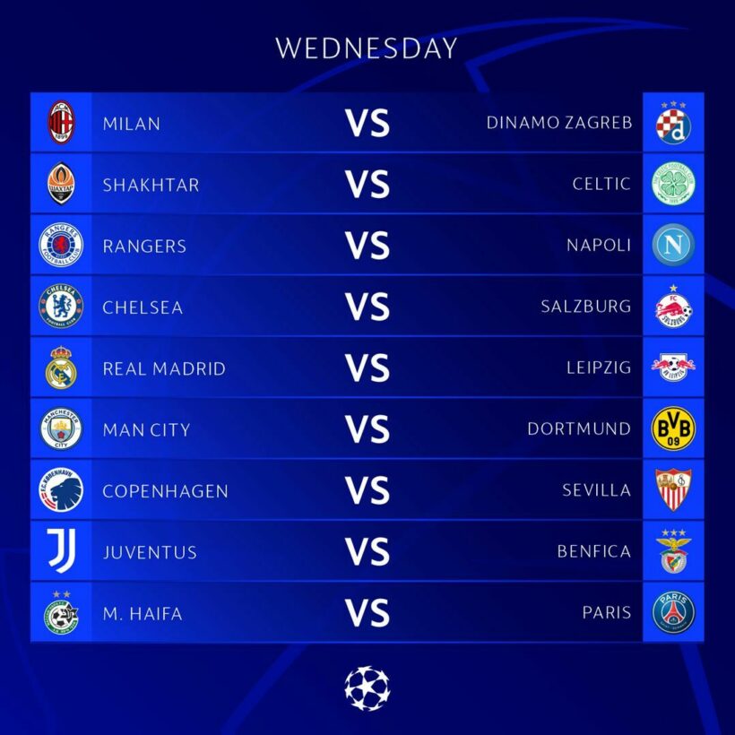 ด้านวันพุธที่ 14 กันยายน จะทำการลงแข่ง ดอร์ทมุนด์, แมนฯ ซิตี้, เชลซี, เอซี มิลาน, เรอัล มาดริด, เปแอสเช และ ยูเวนตุส ลงทำการแข่งขัน