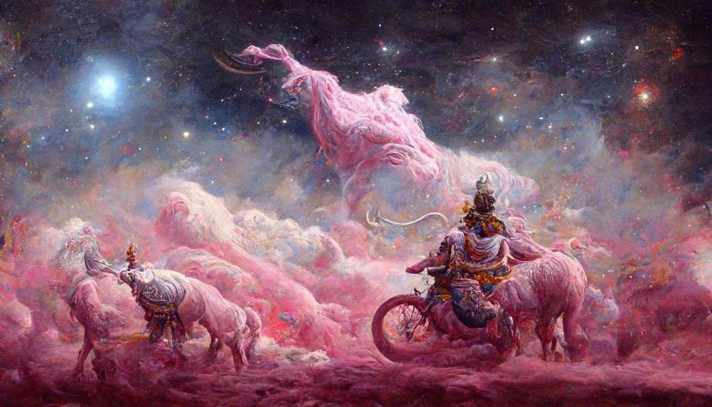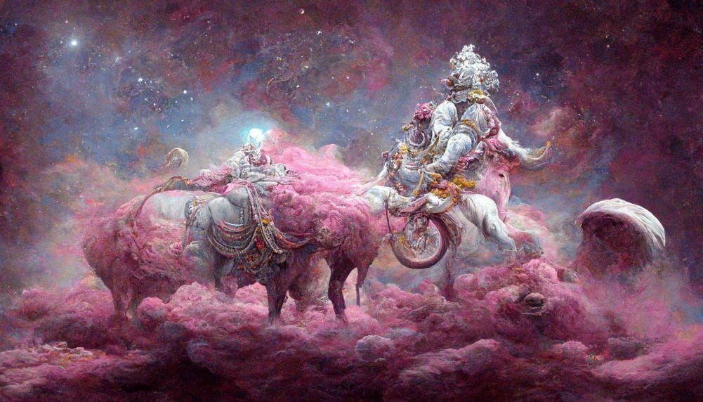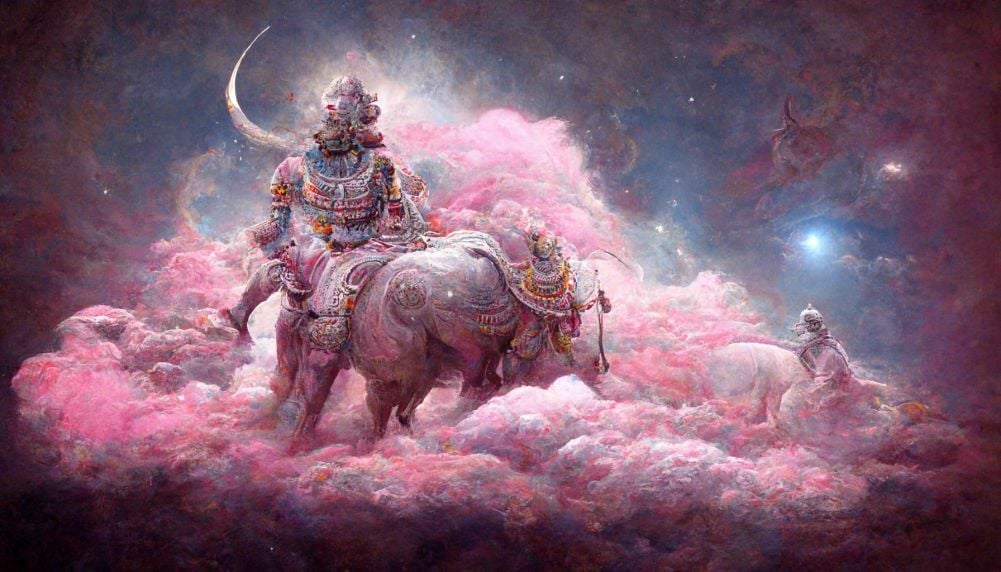พระอังคาร ถือเป็นเทพแห่งความเชื่อของคติอินเดีย ตามตำนานเล่าว่าพระอิศวรนำควาย 8 ตัวมาป่นให้ละเอียดเป็นผง แล้วห่อผ้าสีชมพูเข้ม พรมด้วยน้ำอมฤต แล้วเสกได้เป็นพระอังคารผิวกายสีชมพู ดังนั้น วันอังคารจึงมีสีประจำวันเป็นสีชมพู