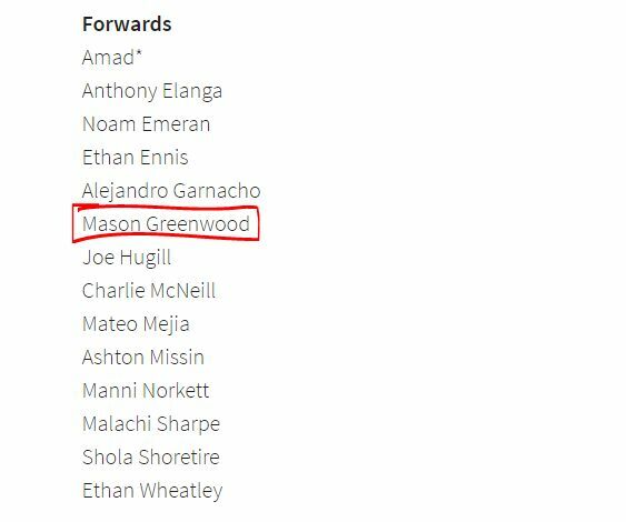 ส่วนทางด้าน แอนโทนี่ อีลังก้า และ อเลฮานโดร การ์นาโช่ เองก็ไม่มีชื่ออยู่ในทีมชุดใหญ่ แต่ถูกใส่ชื่อไว้กับทีมชุดอายุน้อยกว่า 21 ปี