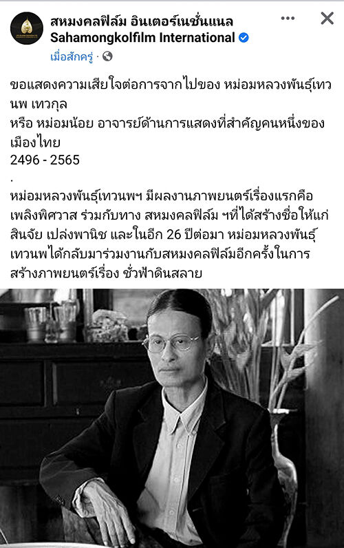 “ลาหม่อมน้อยครับ ขอบพระคุณสำหรับภาพยนตร์ไทยดี ๆ ตลอดมาครับ” คุณชายอดัม ม.ร.ว.เฉลิมชาตรี ยุคล กล่าวอาลัย