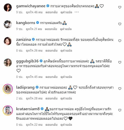 ตั๊ก บงกช คงมาลัย ได้กราบลาหม่อมน้อยผ่านข้อความจากหัวใจ ไม่เคยลืมในสิ่งที่ถูกสอน ขอบคุณสำหรับความรู้และโอกาสที่มีให้ตนเสมอ