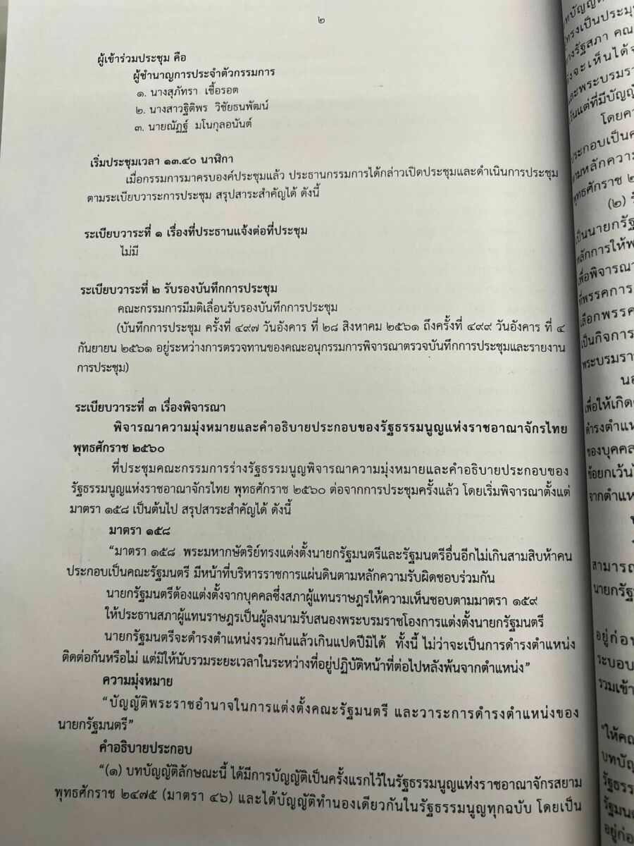 บันทึกการประชุมครั้งที่ 500 วันที่ 7 กันยายน 2561 เริ่มประชุมเวลา 13.40 น. มีกรรมการเข้าประชุม 19 คน ในวาระที่ 3 เป็นเรื่องเพื่อพิจารณา มีมาตราที่นำเข้าสู่การพิจารณา คือ มาตรา 158 , 161 , 171 , 174 , 175 , 176 , 177 , 179 , 180 , 182 และ 183