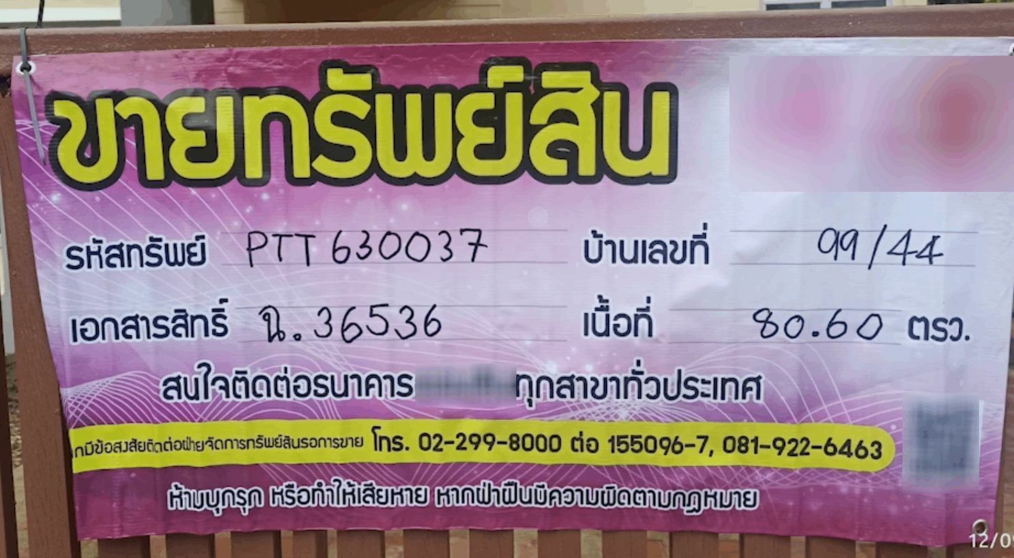 วันที่15 กันยายน 2565 เพื่อนบ้านสงสัยว่าทำไมมีป้ายติดประกาศว่าบ้านเป็นทรัพย์สินของธนาคารห้ามบุกรุกและติดประกาศขาย แต่ ในประกาศเป็นบ้านเลขที่ 99/44 เพื่อนบ้านเลยโทรติดต่อธนาคารไปเพื่อที่จะขอซื้อดู จึงได้รู้ว่าบ้านที่จะขายนั้นบ้านเลขที่99/44 ไม่ใช่ บ้านเลขที่ 99/38