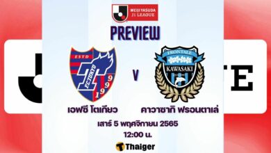 12 ตุลาคม 65 เวลา 17.00 น. ถ่ายทอดสด ดูบอลสด ฟุตบอล เจลีก 2022 คาวาซากิ ฟรอนตาเล่ พบ เกียวโต ซังงะ และลิงก์ดูบอลออนไลน์ ฟรอนตาเล่ซังงะวันนี้ 11 ตัวจริง คาวาซากิ ฟรอนตาเล่ VS ชิมิสึ เอส-พัลส์