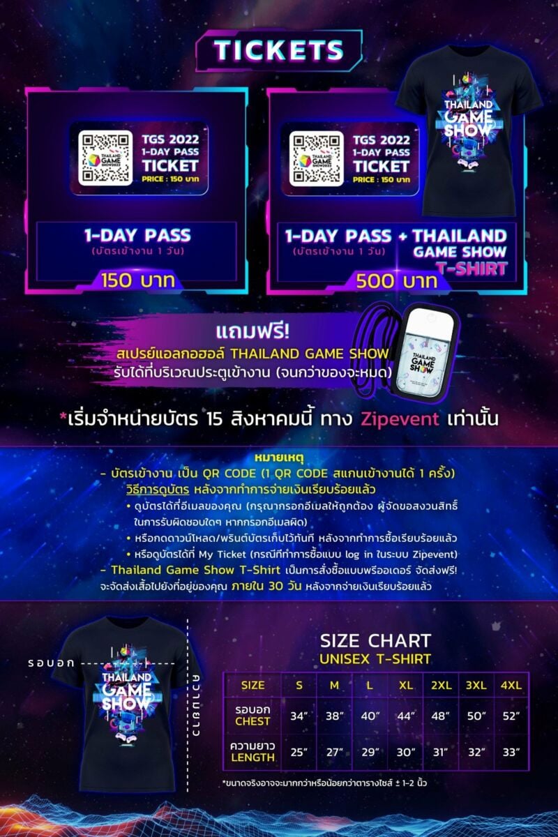 - 1-DAY PASS (บัตรเข้างาน 1 วัน) + Thailand Game Show T-Shirt ราคา 500 บาท