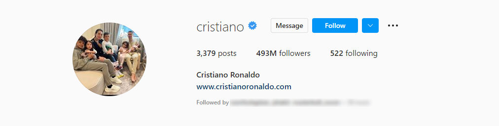 ซึ่งก่อนหน้านี้ โรนัลโด้ เป็นบุคคลที่มียอดผู้ติดตามในอินตราแกรมมากที่สุดในโลก ในขณะนี้มีผู้ติดตามอยู่ที่ 493 ล้านคน โดยในอันดับสองเป็นของ ไคลี เจอนเนอร์ มีผู้ติดตามอยู่ที่ 372 ล้านคน และด้านลิโอเนล เมสซี ตามมาติดๆที่ 370 ล้านคน